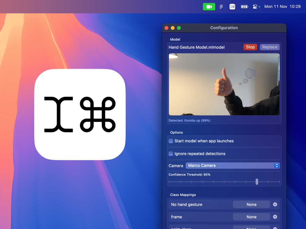 Use your own CoreML models to interact with your Mac through keyboard shortcuts. Develop new interactions for your design tool or use your Mac differently.